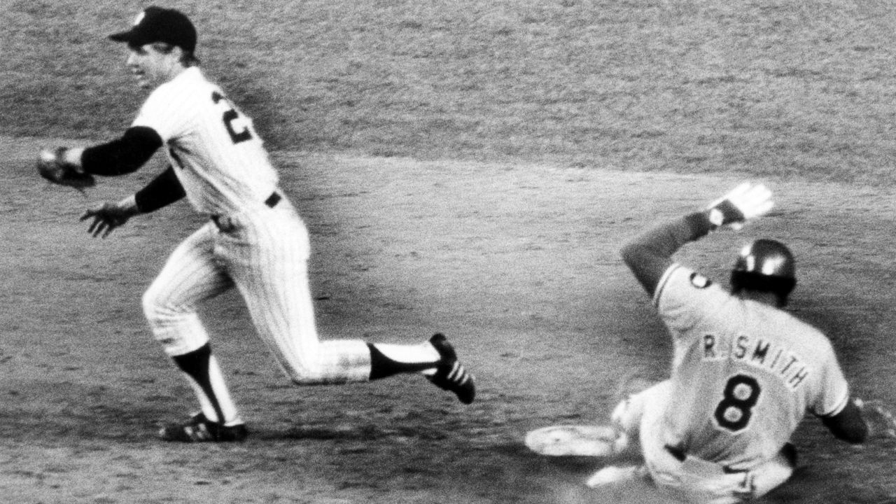 The first Yankees championship since 1962 was a big one, and it was all thanks to Reggie Jackson. "Mr. October" was born in earnest as he blasted five home runs in the six-game series. Three of them came in the deciding contest, including a mammoth shot that traveled 475 feet and put a fork in the series. - Wilson