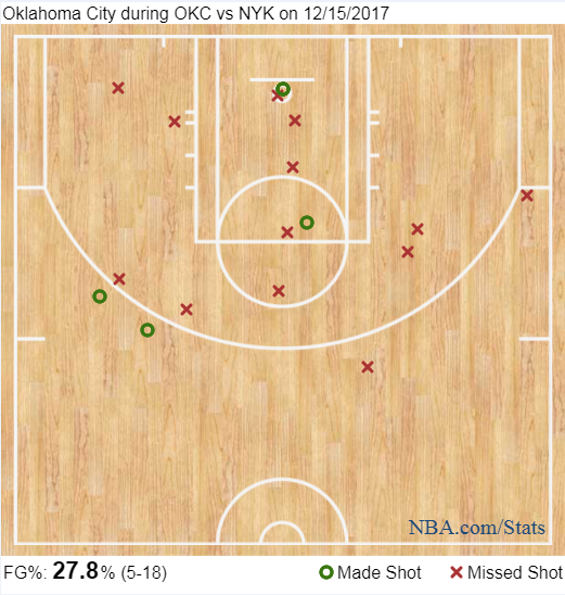 The Oklahoma City Thunder forward converted a 3-pointer less than a minute in to open the scoring for the visiting side, and it looked as if returning home to MSG would reignite his missing scoring touch.
