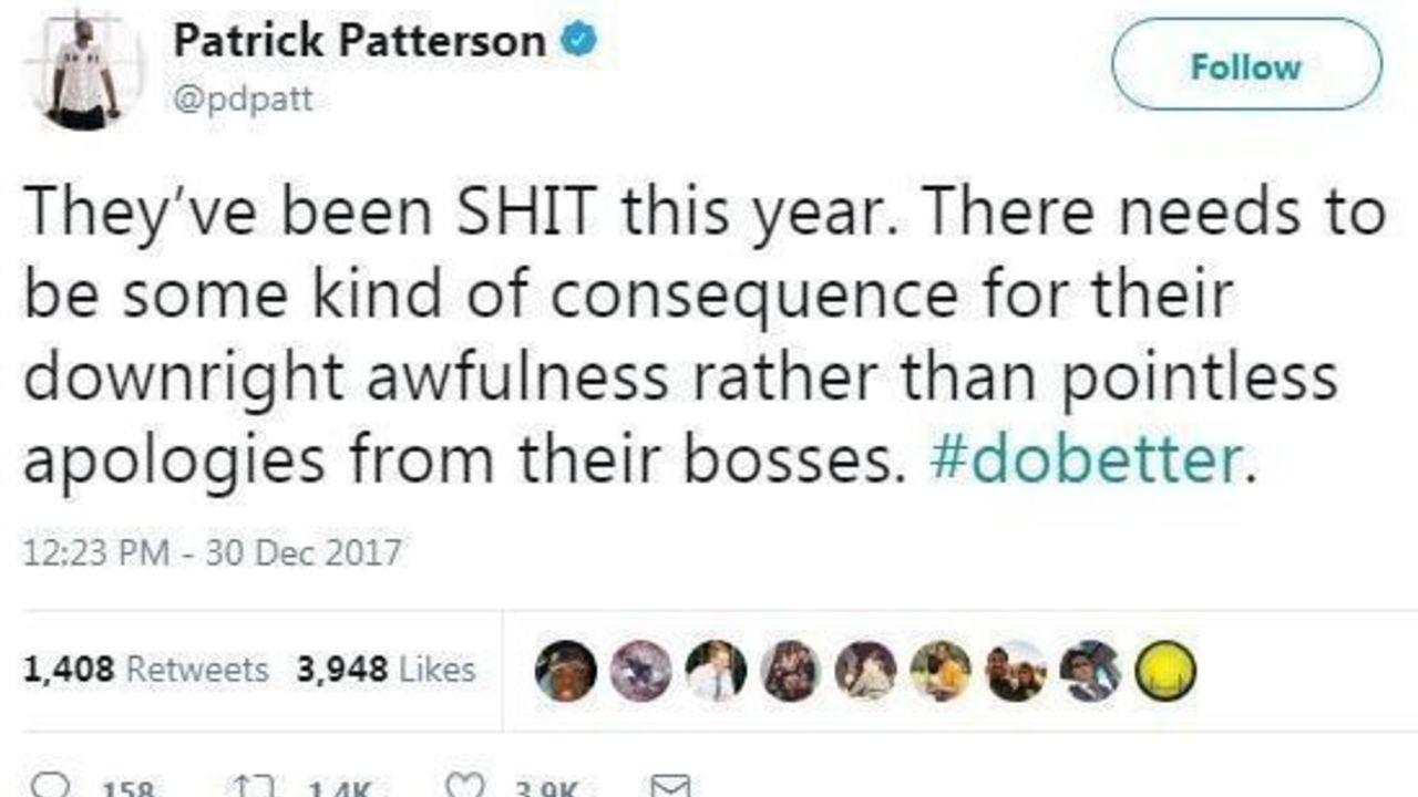Thunder's Patterson fined $10K for criticizing officials on Twitter