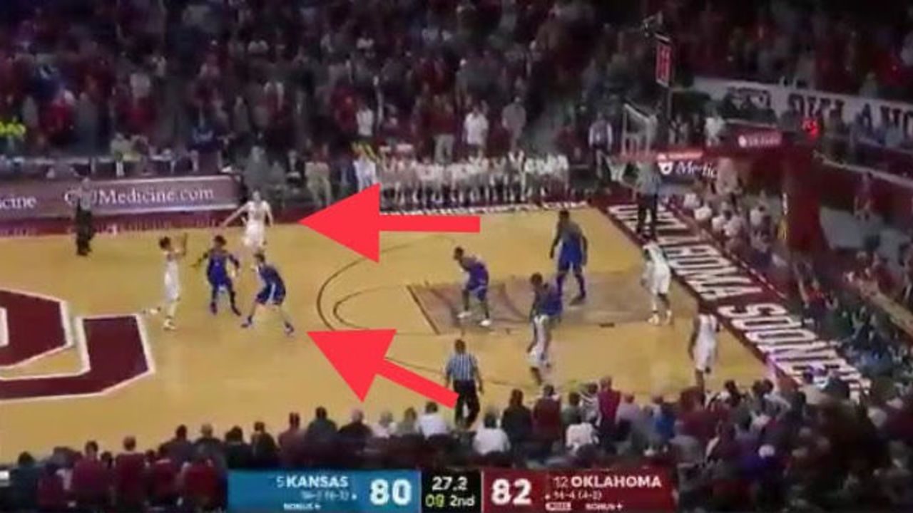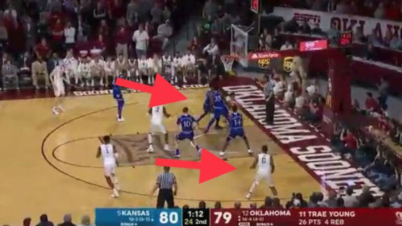 A prime example of this came Tuesday night, in what was arguably the biggest game of Oklahoma's season to date. Down late against Kansas, Young was expected to be the usual long-range gunner he's been all year. With the Sooners down by one with just over a minute to go, Young's gravity brought in four Kansas players as he curled underneath the rim, freeing up Christian James for a wide-open three to give Oklahoma a two-point lead.