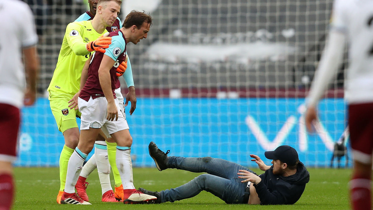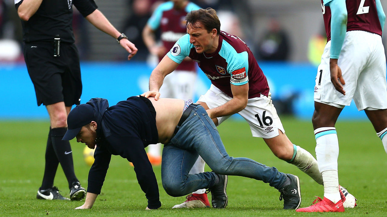 West Ham captain Mark Noble was visibly upset and got into a physical altercation with one pitch invader, whom the midfielder attempted to forcibly remove from the pitch.