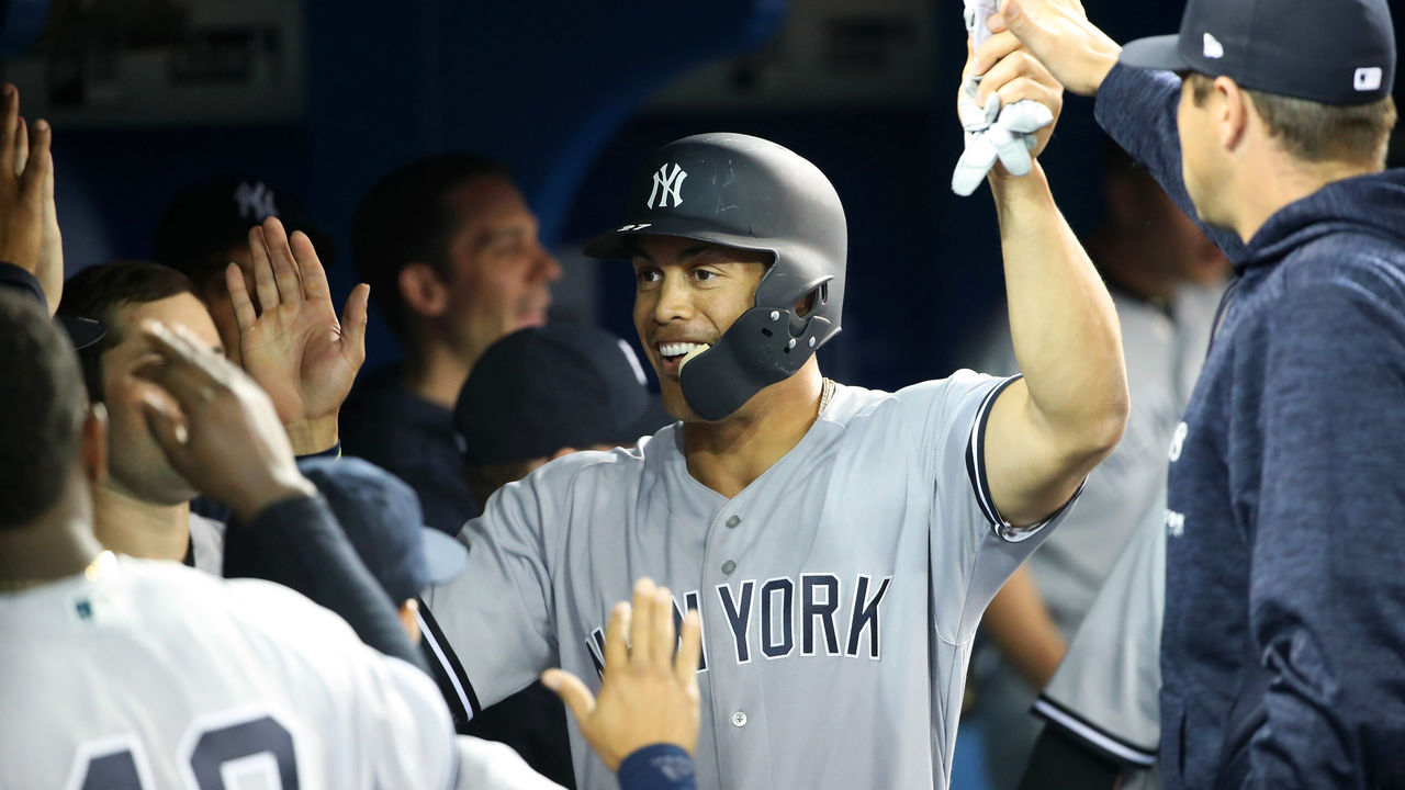 Yesterday, I predicted Giancarlo Stanton wouldn't hit 40 home runs this year, expecting the big lug to be felled by some semi-serious injury. Barely 24 hours into the season, I'm prepared to admit I was wrong. Embarrassingly wrong. He's going to hit 60 home runs by June, and will likely surpass Barry Bonds' single-season record of 73 just before the All-Star break. (Unless, of course, teams just start intentionally walking him every time, which may actually be the right strategy, all due respect to Gary Sanchez and run-expectancy realities.) I mean, did you see that first-inning dong he hit off J.A. Happ? The guy hit a two-seamer on the inner half out to right-center with an exit velocity of 117.3 miles per hour - the hardest-hit opposite-field homer in the Statcast era. Then, a few hours later (after smoking a double in his third at-bat), Stanton bookended his Yankees debut by launching a lousy backdoor changeup from Tyler Clippard into the Rogers Centre beer garden in straightaway center, an estimated 434 feet away. (That one exploded off his bat, too, with an exit velocity of 109.4 mph.) Conservatively, I'm thinking he finishes with 94 homers and joins Frank Robinson as the only players in history to be named MVP in both leagues.
