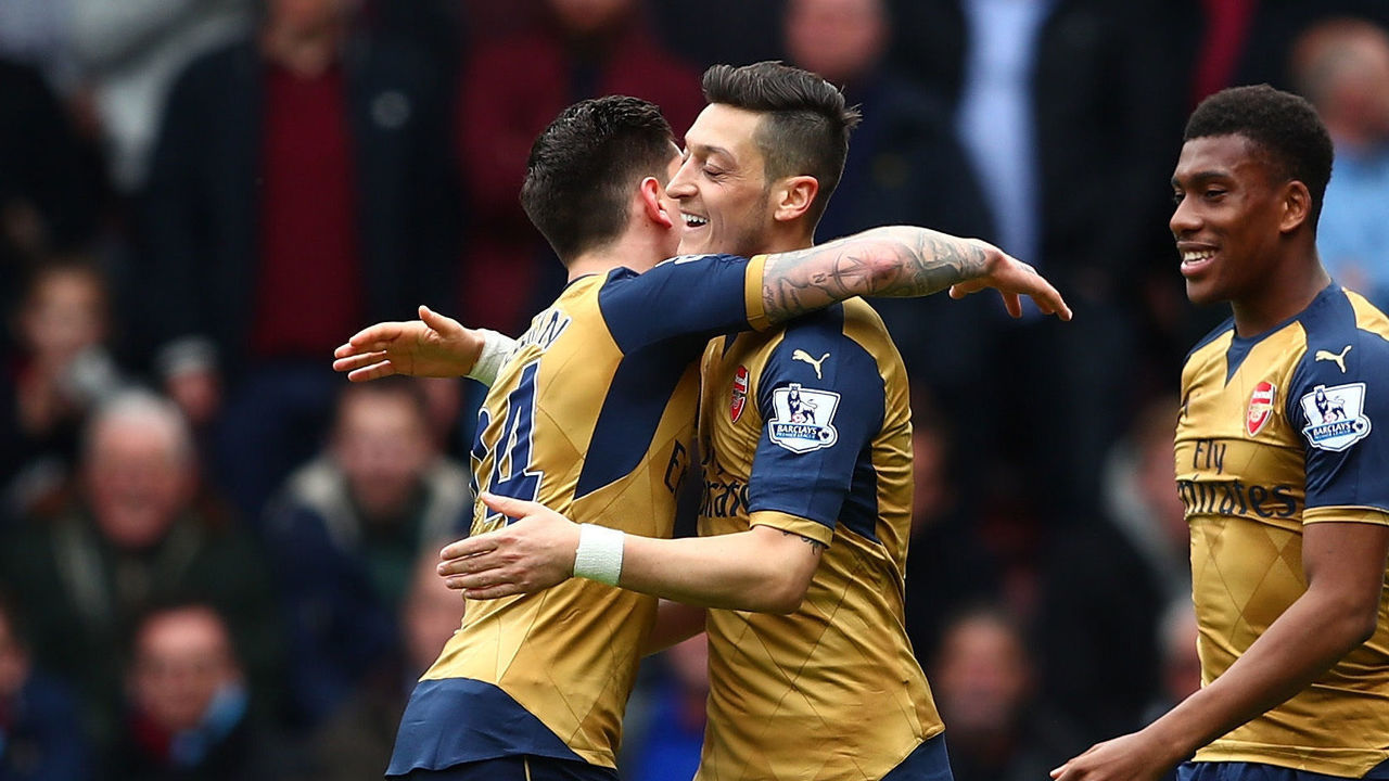 Hector Bellerin and Mesut Ozil have hugged and made up after their on-field spat during Sunday's win over Stoke City.