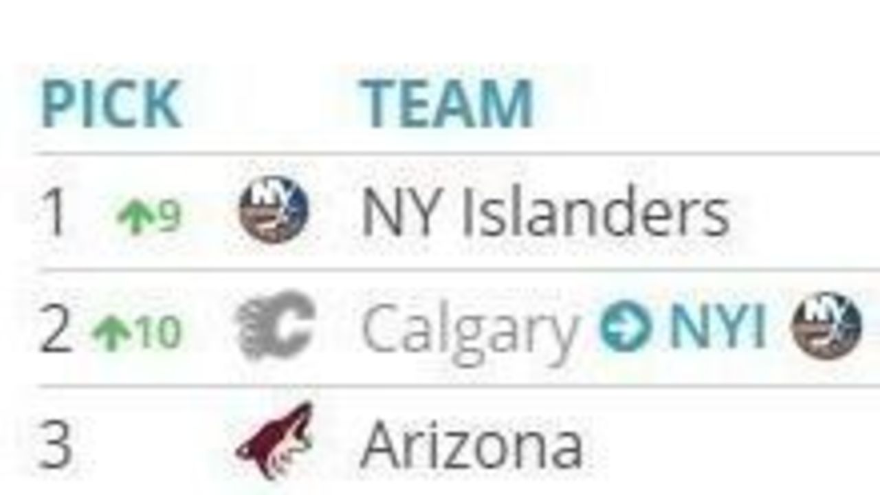 The Flames have the 12th-best chance to win (2.5 percent), but they traded that pick to the New York Islanders last offseason as part of the Travis Hamonic deal - meaning the Islanders have two chances to walk away with a lottery selection.