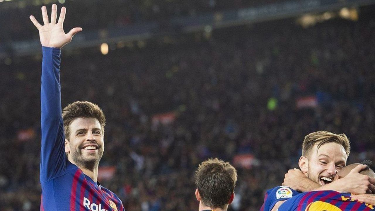 After Arturo Vidal put the final nail in the coffin - rising up, unchallenged, to head home Barcelona's fifth and final goal against Real Madrid on Sunday - his teammates joined him to celebrate by the corner flag. As the huddle broke, Pique turned and gave the crowd a familiar five-finger salute.