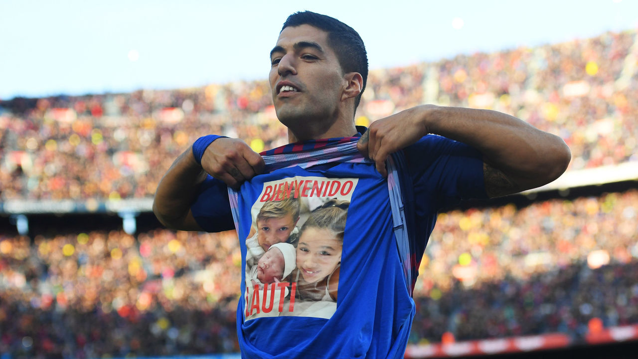 And Suarez was prepared for it, judging by the undershirt he revealed after scoring his first goal of the night. "Welcome, Lauti," the shirt read, printed over a photo of his first two children, Benjamin and Delfina, with their baby brother.