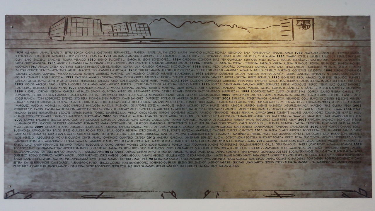Featured prominently in the main hall that connects reception with the common area, a massive plaque is engraved with the name of every player to have lived at La Masia. All the usual suspects are visible: Puyol, Iniesta, Fabregas, Busquets. Those you may have forgotten came through Barcelona's academy - the likes of Icardi, Keita Balde, and Deulofeu - are there, too.