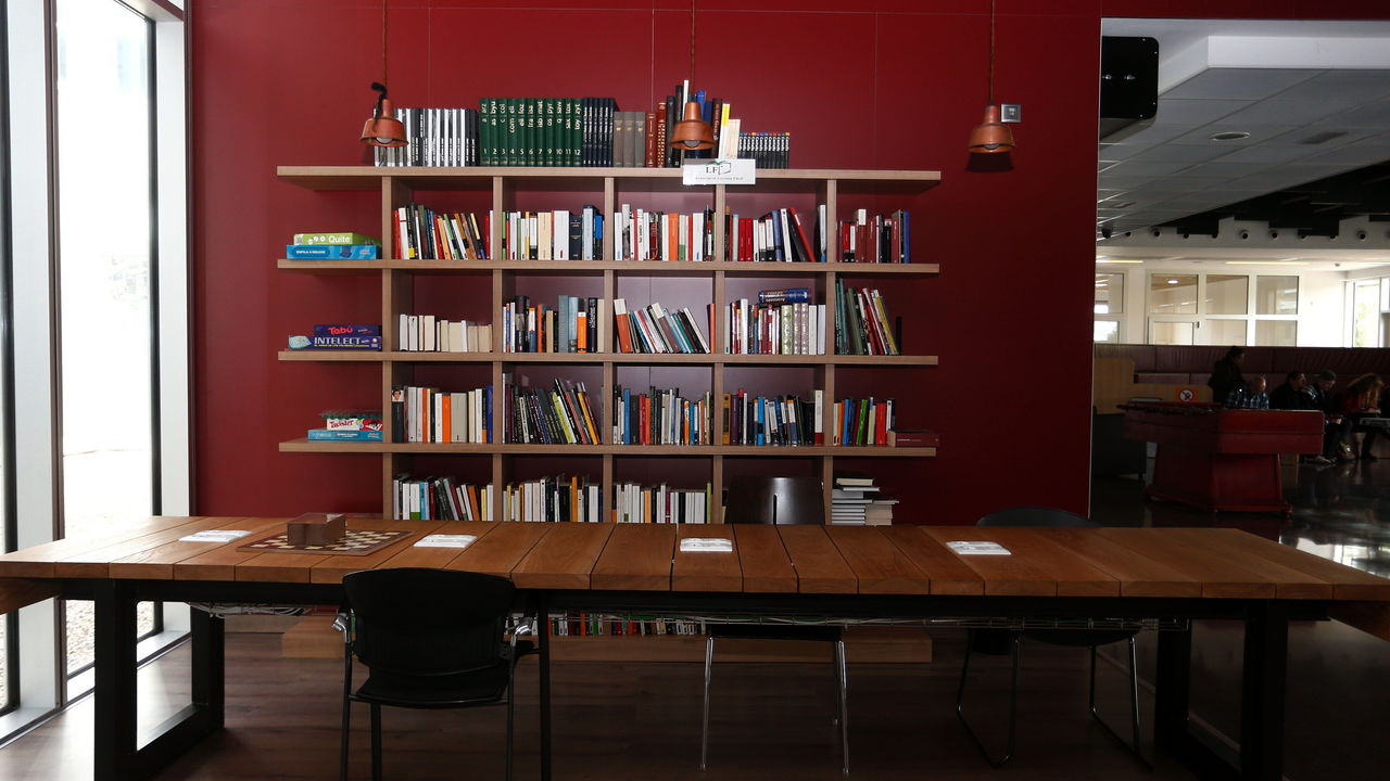 A vintage foosball table sits in the middle of the common room. Ping pong is also an option, along with an air hockey table; the latter seems to be the least popular of the gaming choices (it's not plugged in).