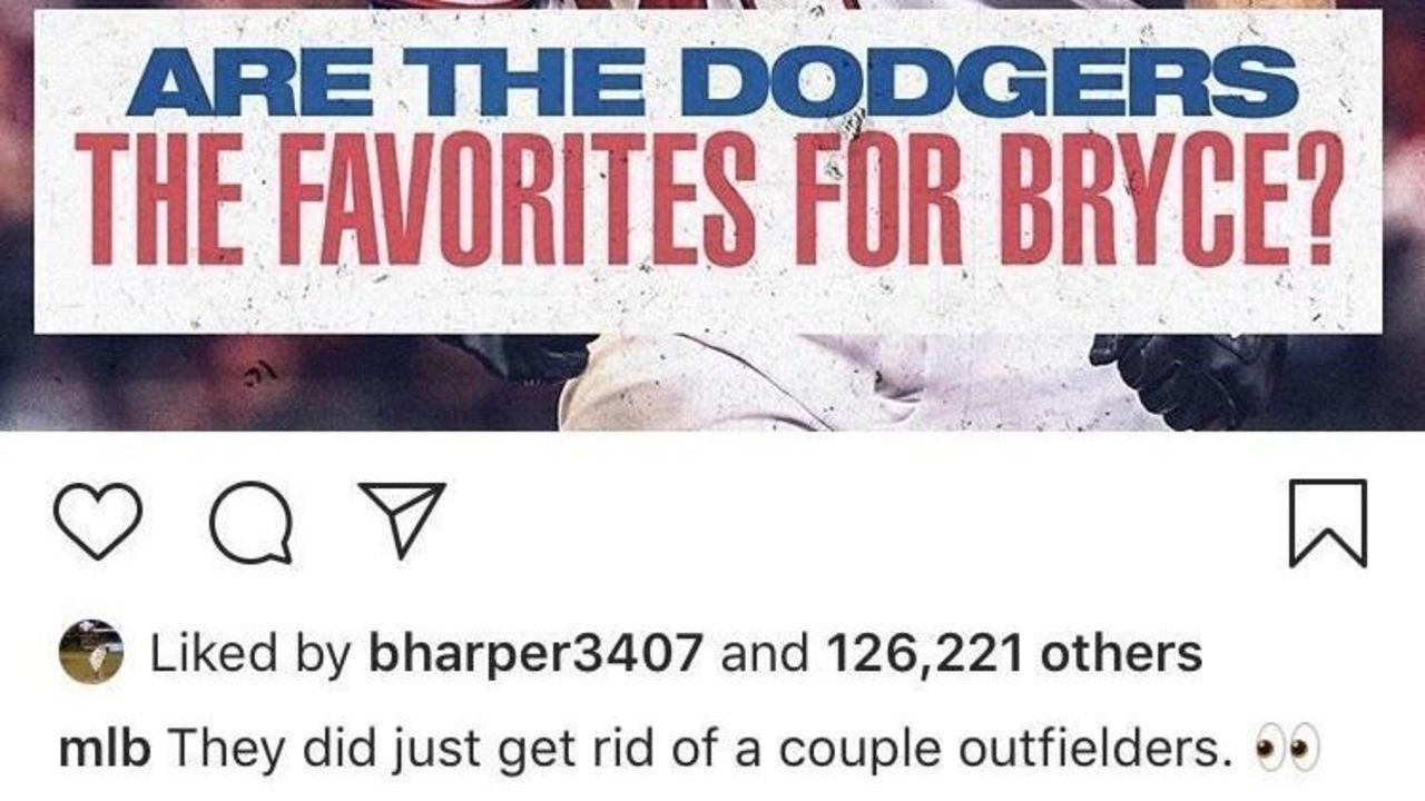On Friday, shortly after the Los Angeles Dodgers cleared a large swath of payroll in a seven-player blockbuster trade with the Cincinnati Reds, MLB's Instagram account asked if the deal made Los Angeles the favorites to sign Harper this winter.