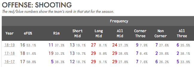 The difference is they now have personnel capable of taking advantage of the efficient looks they create. After ranking 26th and 24th in 3-point percentage the past two years, respectively, they're up to seventh this season.