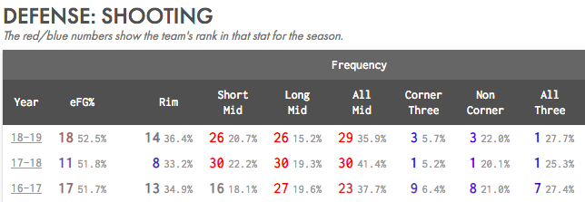 Also, for a second straight year, they're the best team in the NBA at running opponents off the 3-point line, and a top-two team at coaxing mid-range attempts.