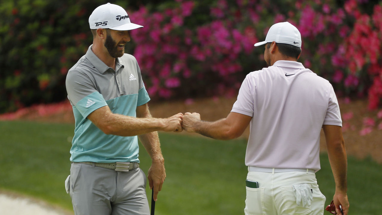 Dustin Johnson and Tiger are in a group one shot back. They're joined by Xander Schauffele and South Africa's Justin Harding, the only players in the top nine without major victories.
