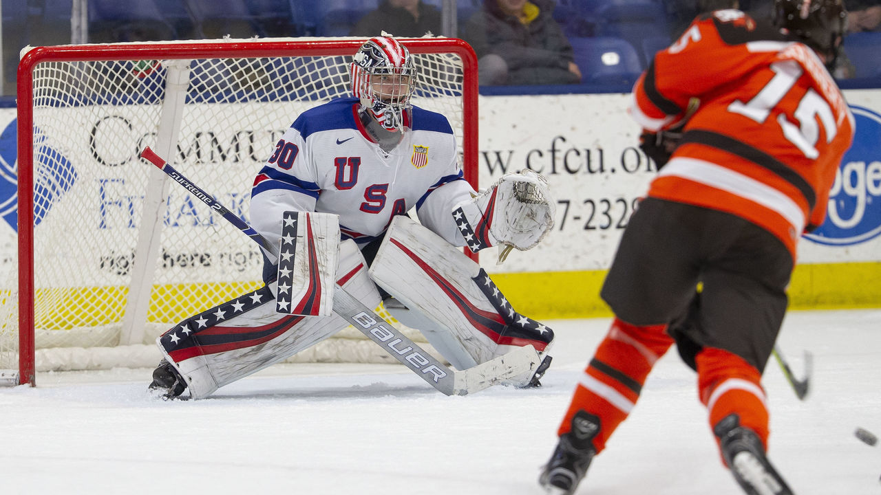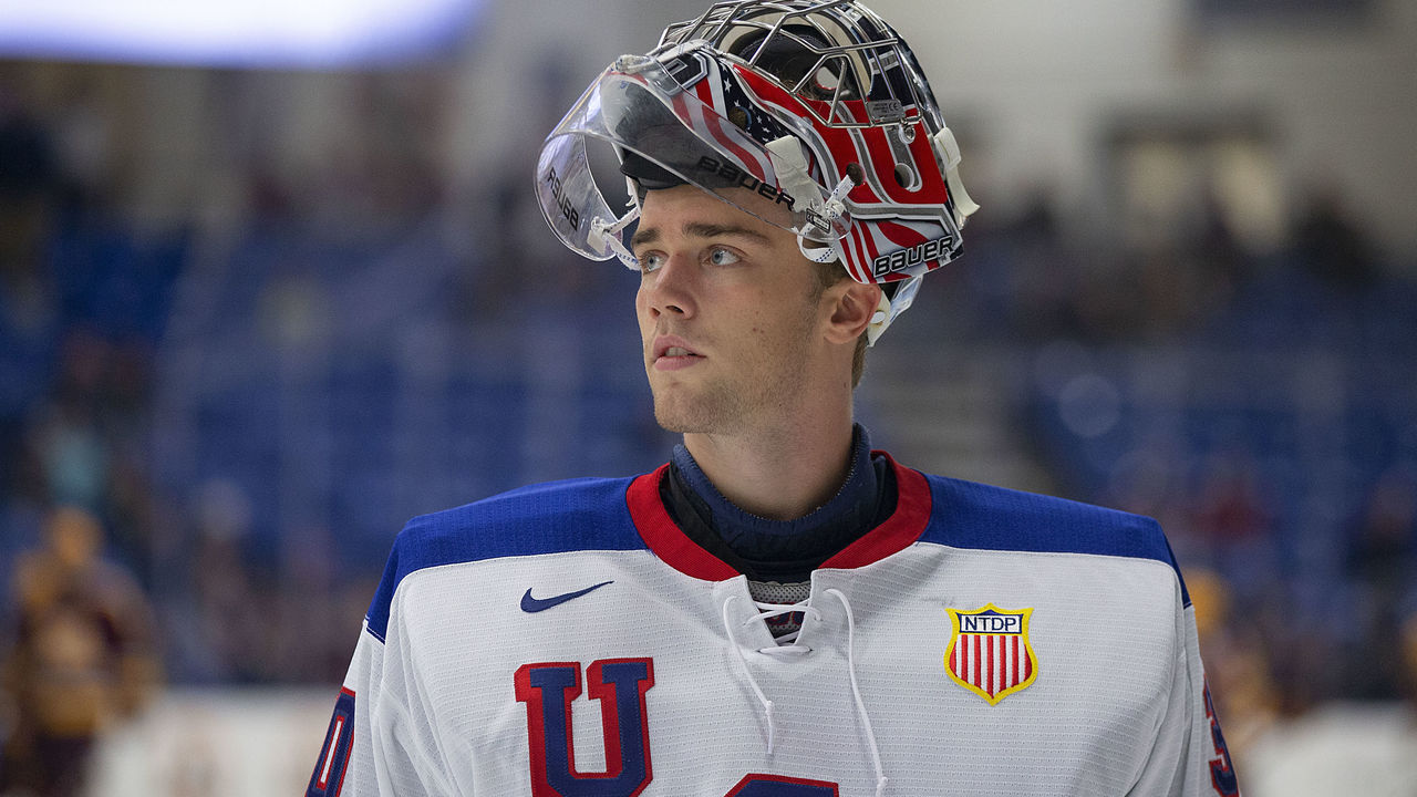 Knight's stats are solid but not eye-popping. The 6-foot-3, 198-pounder posted a 2.36 goals-against average and .913 save percentage in 39 games this year. The USNTDP - essentially a full-time all-star team - splits its schedule between USHL, NCAA, and international competition. That high level of play more or less offsets any questions about Knight hiding behind a group of skaters capable of dominating teams their age or older.