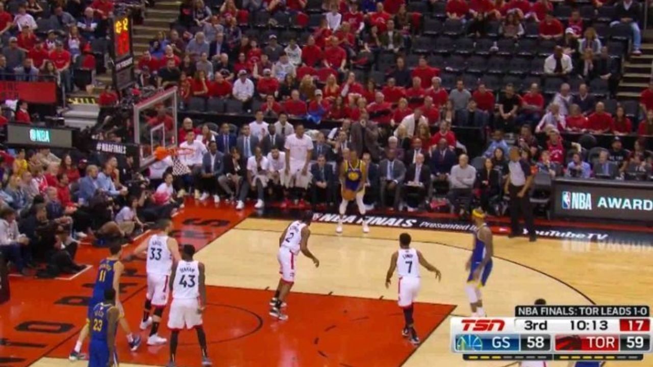 The Raptors were cruising in Game 2, leading by as many as 12 points late in the second quarter as they continued to lock down the Warriors in the half court. For Golden State, Kevin Durant was still sidelined and Steph Curry was ill. A hobbled Andre Iguodala had to leave the game for a spell after being shaken up by a hard screen. Kevon Looney had to leave the game for good after having his collarbone busted while contesting a Kawhi Leonard drive, and Klay Thompson eventually joined Looney on the shelf for the game's final eight minutes after suffering a hamstring strain.