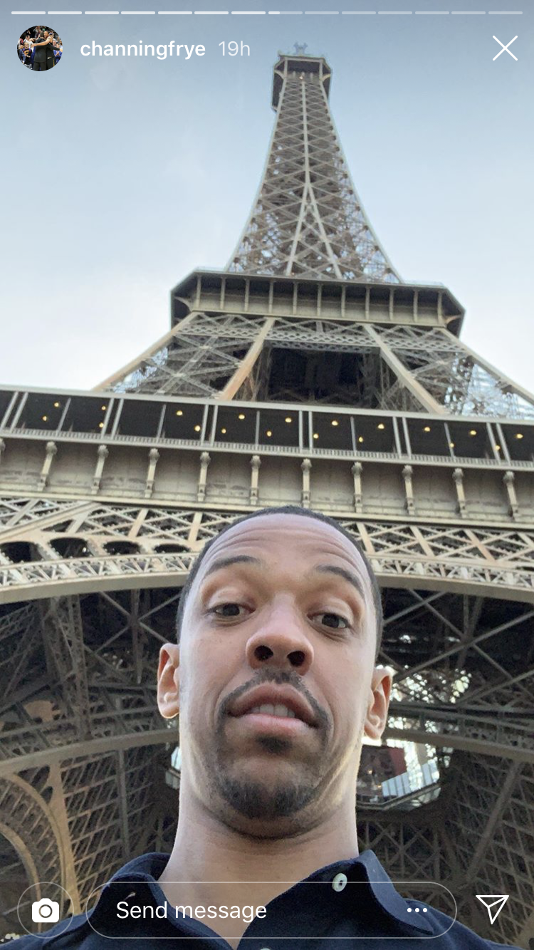 Frye then headed to Paris, where he visited the Eiffel Tower and swam in a fancy pool.