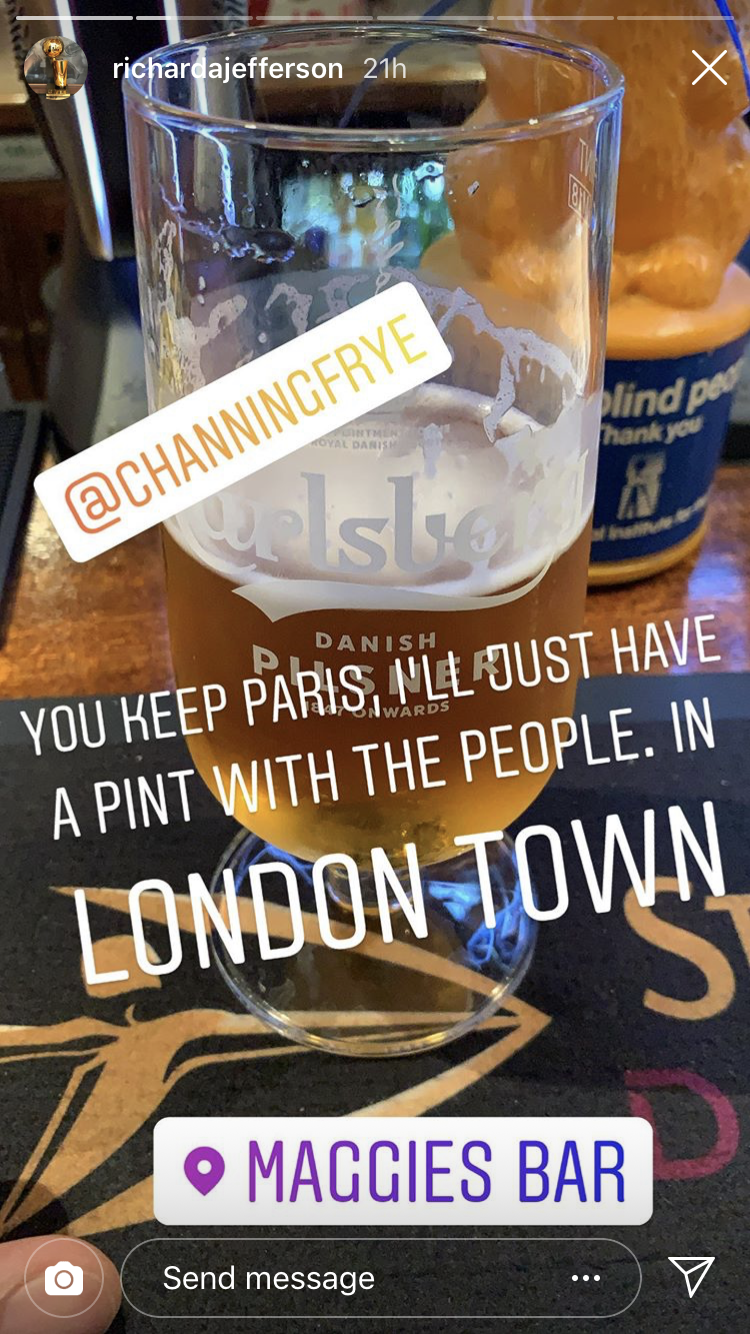 Jefferson, meanwhile, enjoyed a pint at a pub in London.