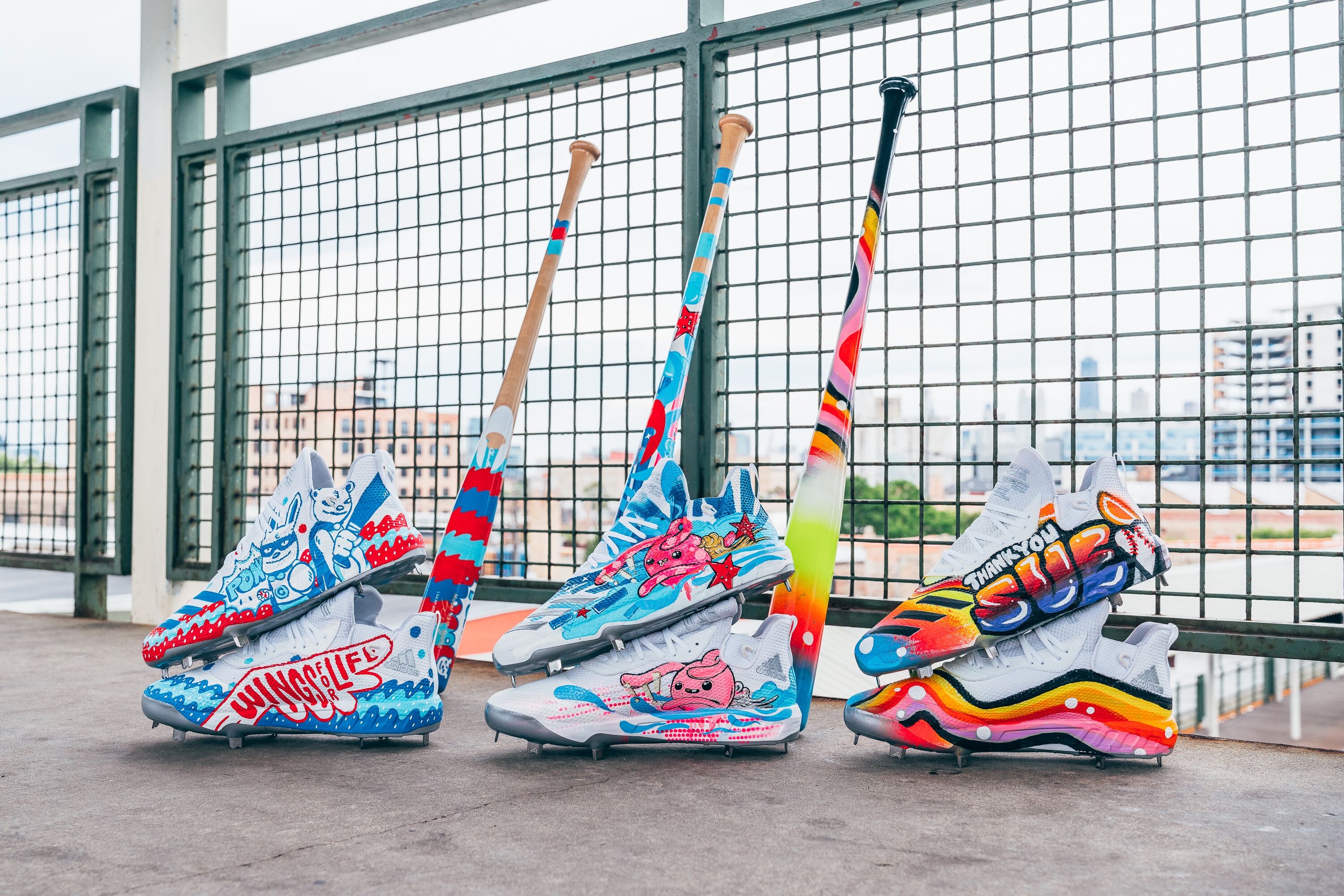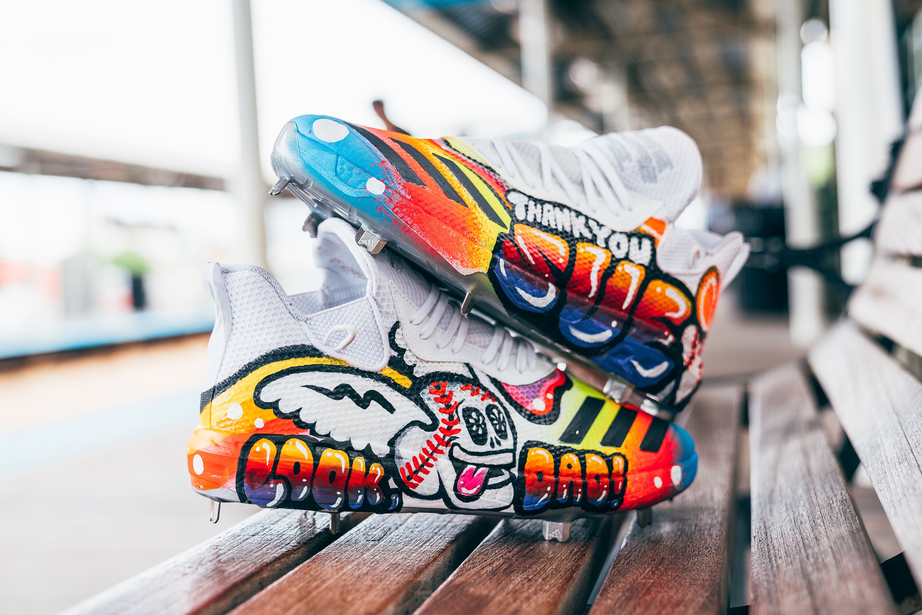 The cleats and bats were customized by Chicago street artists AFROKILLA, ELLO, and Blake Jones. Each design tells a different story inspired by Bryant's childhood memories.