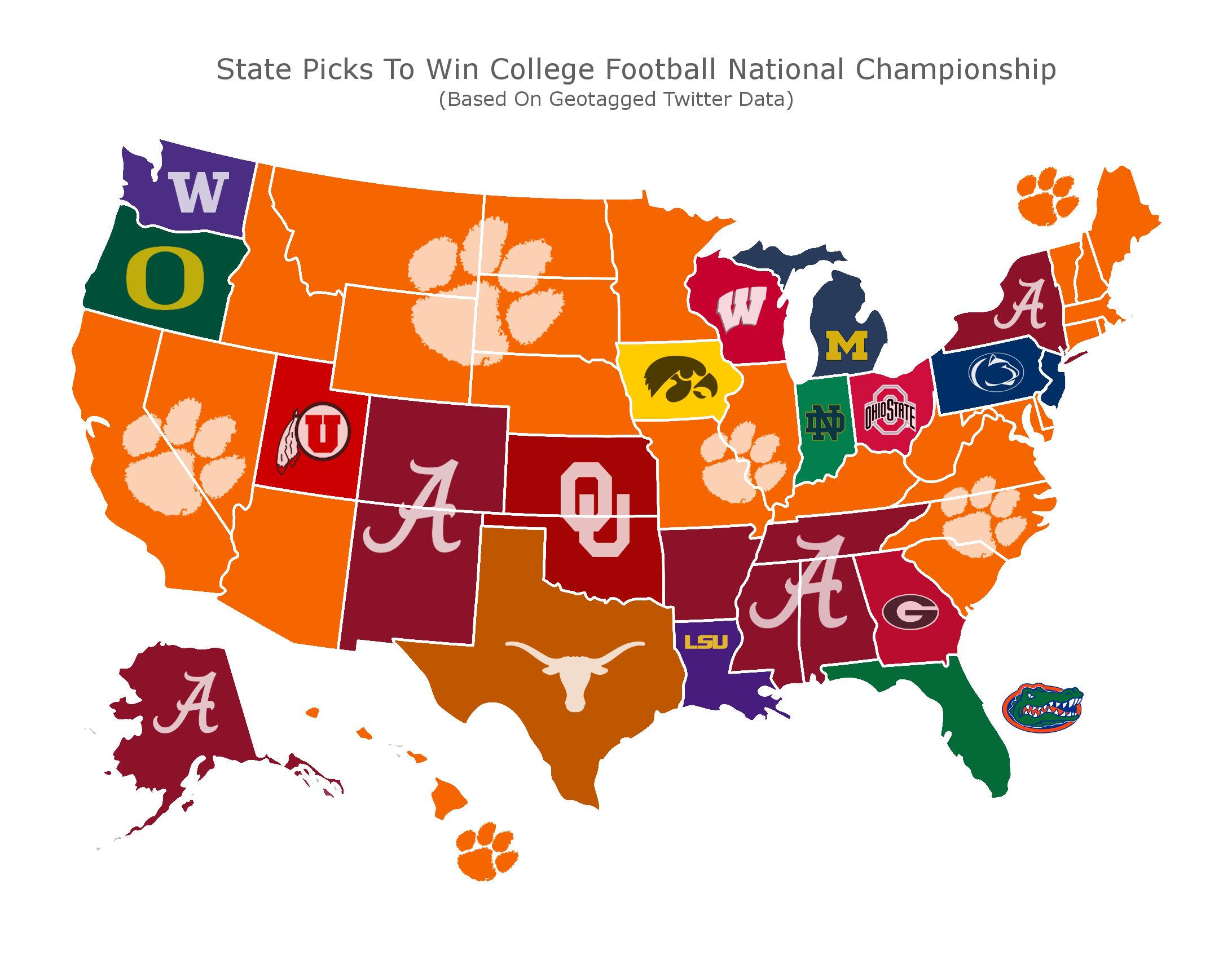 Twitter map shows most of U.S. thinks Clemson will defend title