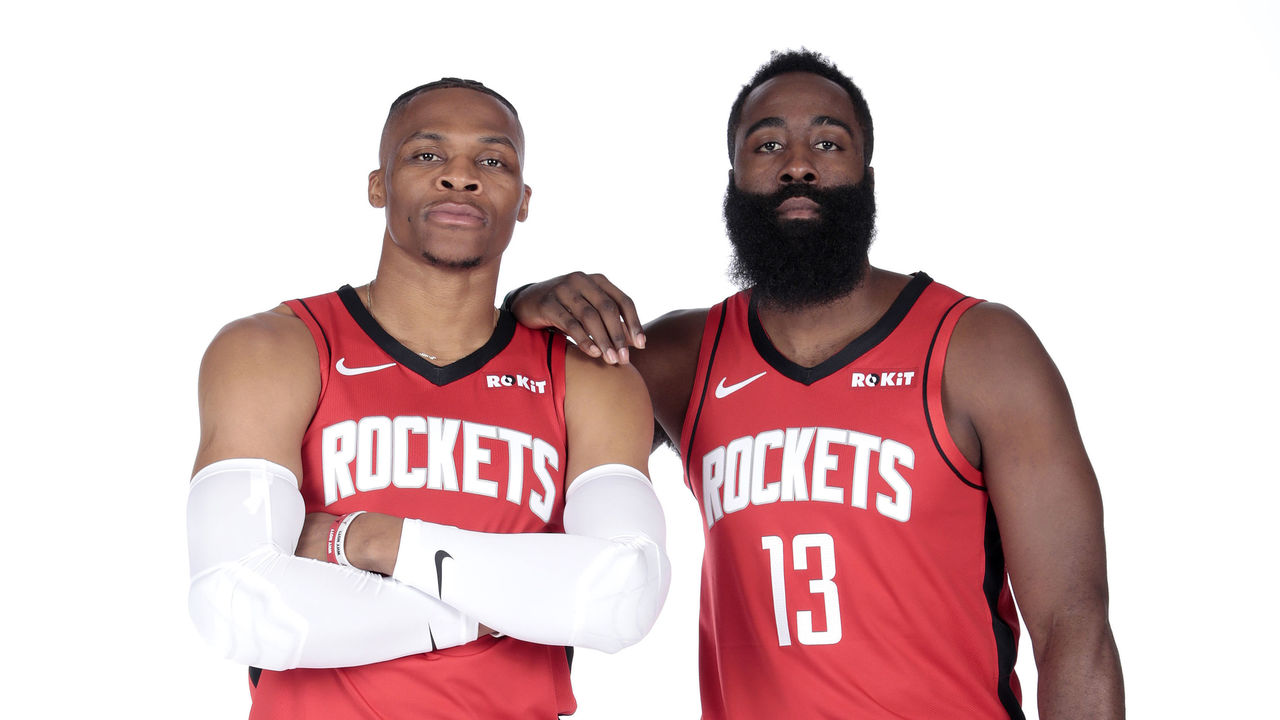 Neither star has historically been effective as an off-ball player. Both tend to favor standing around the arc watching and waiting, rather than cutting and screening and relocating. Harden, at least, possesses off-ball magnetism. Westbrook does not, at least while his default mode without the rock is chilling near midcourt with his hands on his knees. If that's going to continue, as it seems destined to after 11 years of experience, he must at least improve on his 31.4 percent mark on catch-and-shoot jumpers from last season.