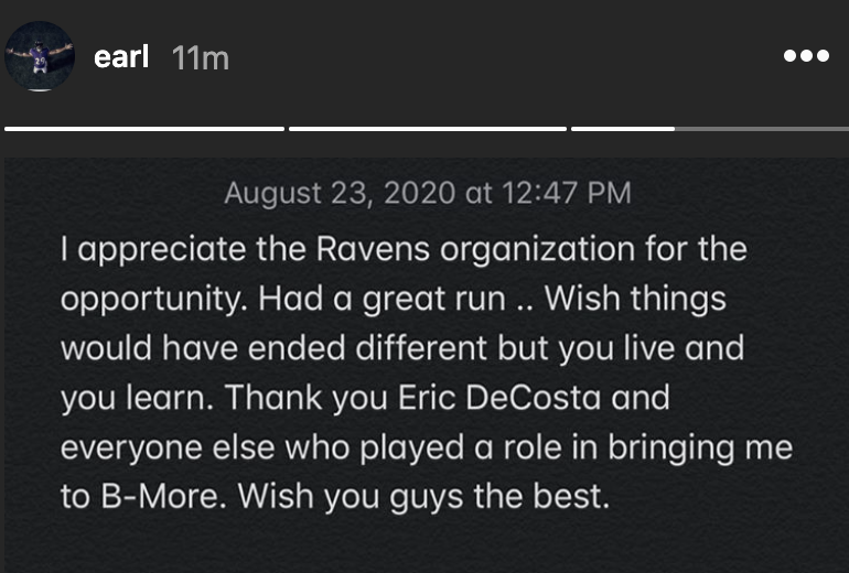 "I appreciate the Ravens organization for the opportunity," Thomas said on Instagram. "Had a great run ... Wish things would have ended different but you live and you learn. Thank you (general manager) Eric DeCosta and everyone else who played a role in bringing me to B-more. Wish you guys the best."