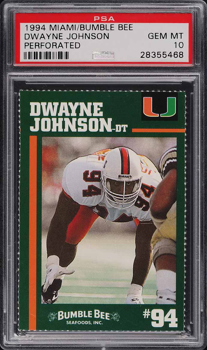 A 1994 Dwayne "The Rock" Johnson Miami card sold Wednesday night on eBay for $13,988.