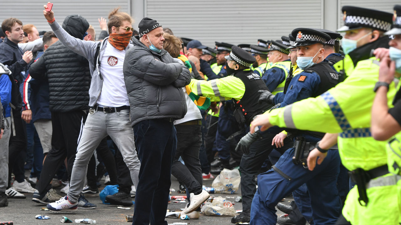 Supporters broke into the stadium and flooded the field as separate demonstrations took place outside the team hotel and the ground. There were clashes outside Old Trafford when police moved in to try to restore order.