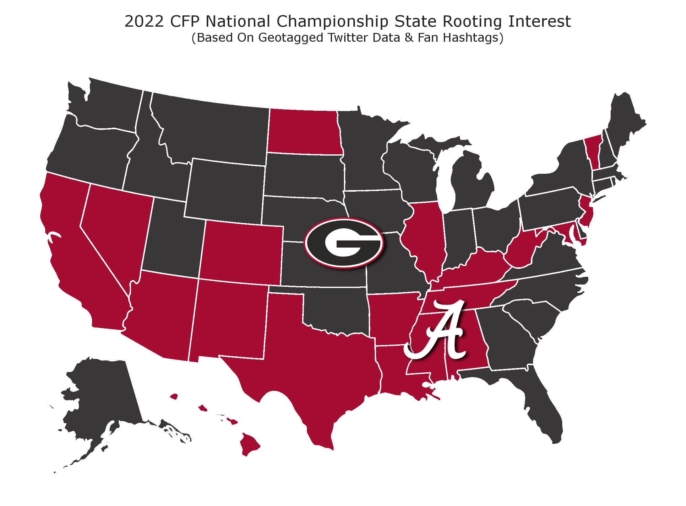 Most of the United States is hoping for a Georgia victory in the College Football Playoff National Championship, according to new Twitter data.