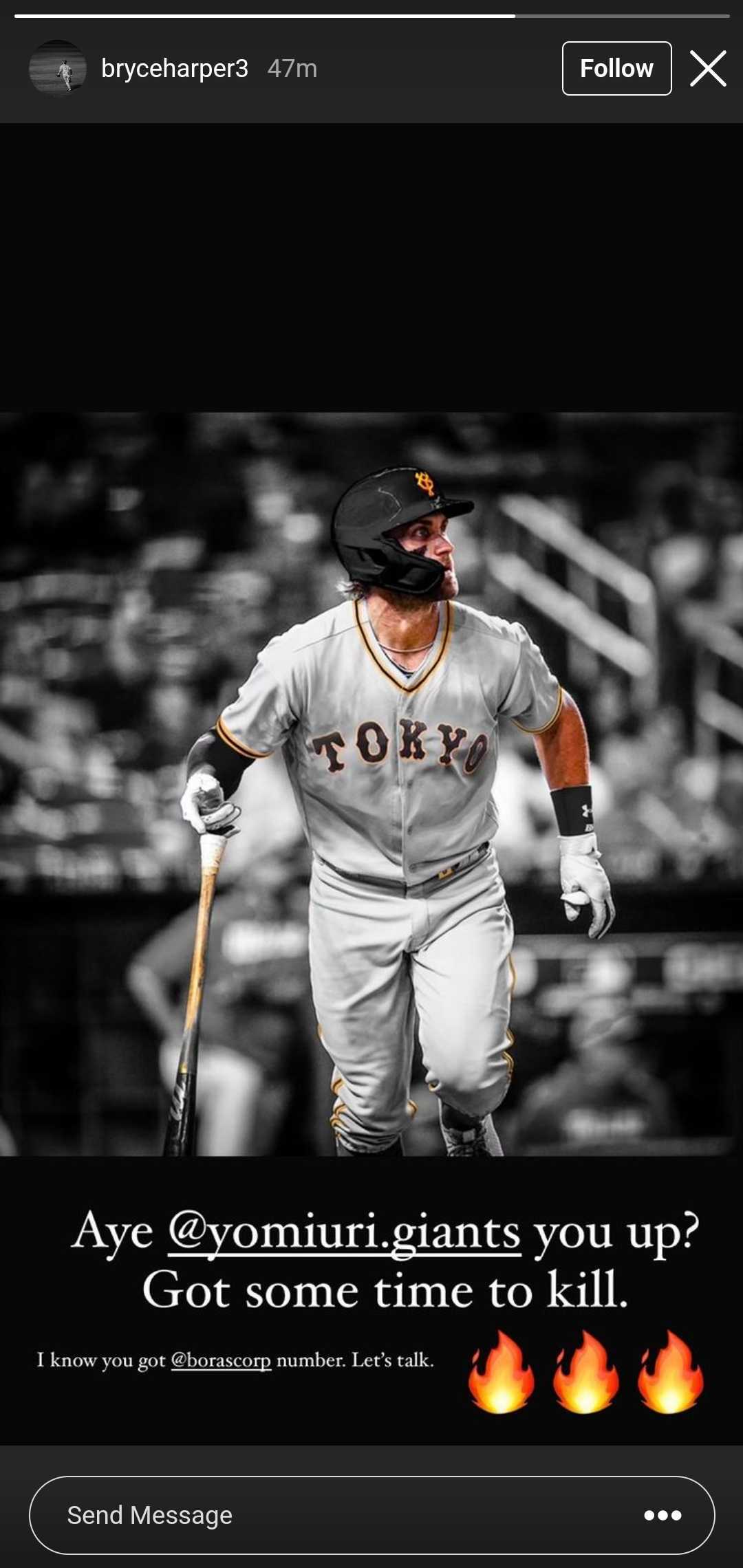 Harper offers services to Japan's Yomiuri Giants: 'Got some time to kill'