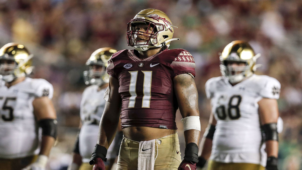 In a deep edge rusher class, Johnson is the ultimate consolation prize in the second tier of pass-rushers. He got his first taste of consistent starting experience at Florida State after transferring from Georgia before last season and hasn't looked back, winning ACC Defensive Player of the Year. Johnson is a monster in the trenches thanks to his unmatchable size and length. His 34-inch arms are a marvel to watch on the field as he forces his way into the pocket - usually with a variety of swim, swat, or rip moves. That also carries over into the run game - he uses his freak size to obtain the necessary leverage to get off blocks. We've gotten a taste of Johnson's talent, but it seems the best is yet to come.