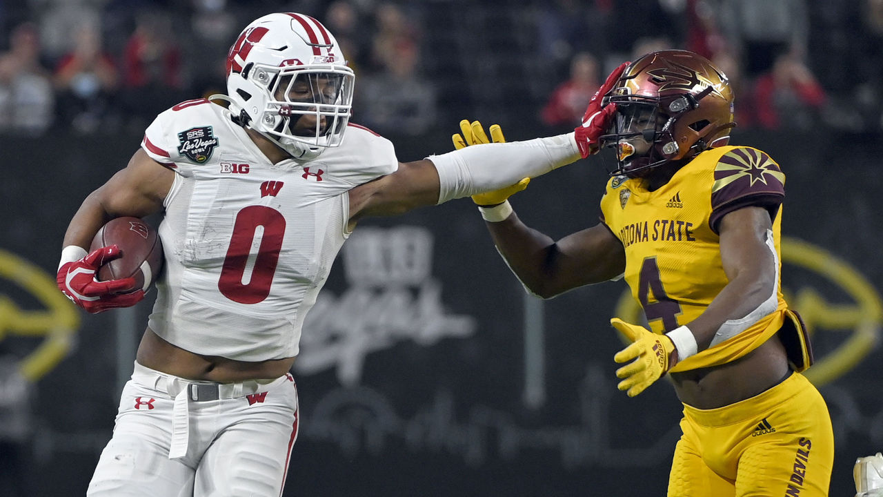 Braelon Allen is the next man up in a long tradition of great Wisconsin tailbacks. He broke out on the scene in 2021 as a freshman following injuries to more experienced players on the depth chart. Despite only starting four times, Allen tallied 100-plus yards in eight games and finished with 1,268 rushing yards, 12 touchdowns, and 6.8 yards per carry.