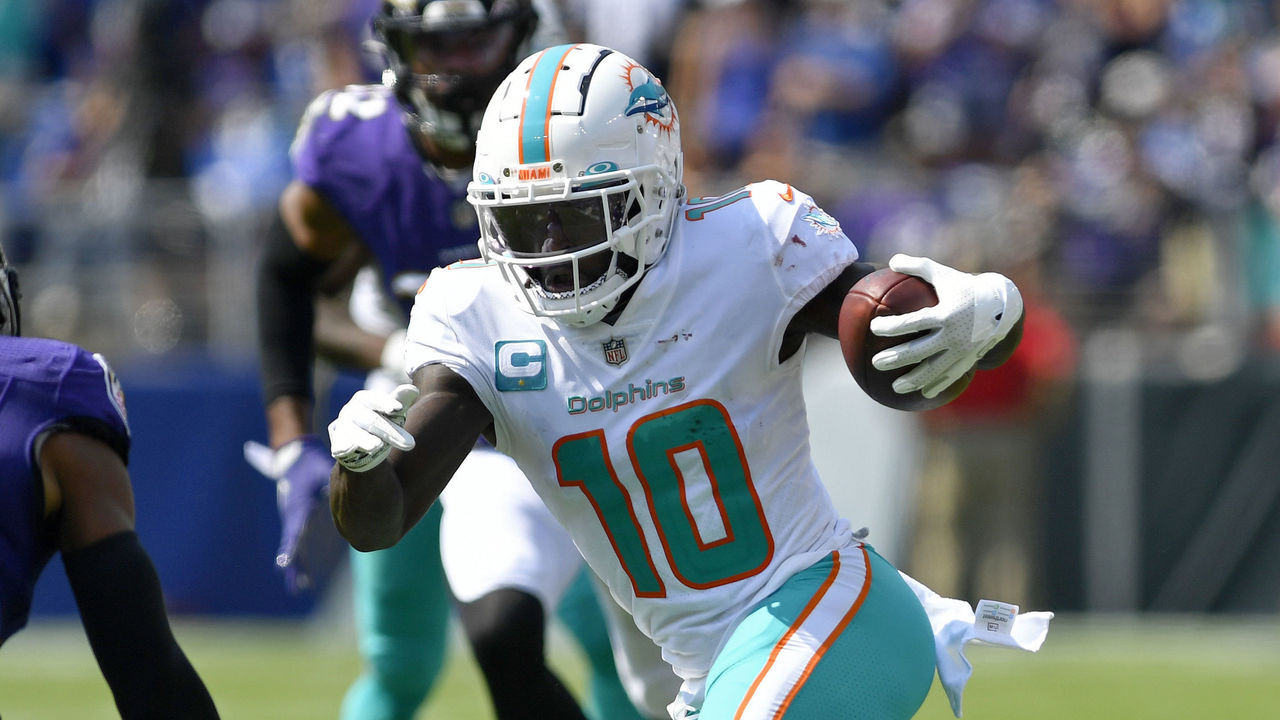 Miami's star wideouts were the difference in an incredible 21-point comeback win over the Ravens. Hill finished the day with 11 catches for 190 yards and two touchdowns, with his scores coming from 48 and 60 yards out in the 4th quarter - the first of which cut Baltimore's lead to seven and the second tying things up with just over five minutes to play.