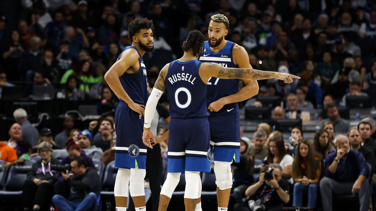 The Wolves were built to pile up points and finished seventh in offensive efficiency a season ago. But before beating up on the rebuilding, shorthanded Magic on Wednesday, they ranked 19th. The starting lineup of Gobert, Towns, Jaden McDaniels, Anthony Edwards, and D'Angelo Russell has been particularly anemic, producing a 105.7 offensive rating that barely clears the Lakers' league-worst mark (105.4). Minnesota has scored much more efficiently when Towns plays without Gobert (117.3) but has bled points defensively in those minutes (119.1 compared to 110.6 with both on the floor), according to PBP Stats. The opposite problem has occurred when Gobert plays without Towns.