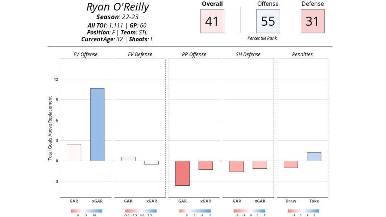 But O'Reilly has been one of the game's best two-way centers through his career. He's finished top five in Selke Trophy voting in each of the past four seasons, winning the award in 2018-19. He also won the Conn Smythe Trophy that season when he led the Blues with 23 points in 26 playoff games en route to the franchise's first Stanley Cup.
