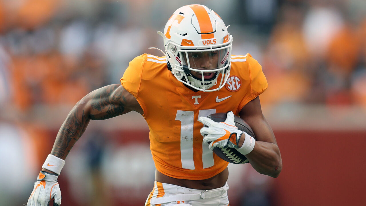 If speed is the name of the game, then it won't take long for NFL commissioner Roger Goodell to announce Hyatt's name on draft night. The Tennessee product is an absolute blazer who possesses elite 4.4 speed. His transition to his second gear is effortless, and his ability to detach vertically from opposing defensive backs was second to none in 2022. Hyatt was one of the driving forces behind the Volunteers' 2022 surge, winning the Fred Biletnikoff Award as the nation's best receiver after scoring 15 touchdowns. He's also got very reliable hands and is comfortable making catches away from his body or in tight windows. While he wasn't tested much against press coverage and his route tree was very elementary, Hyatt should have no problem translating his game-breaking speed to the next level.