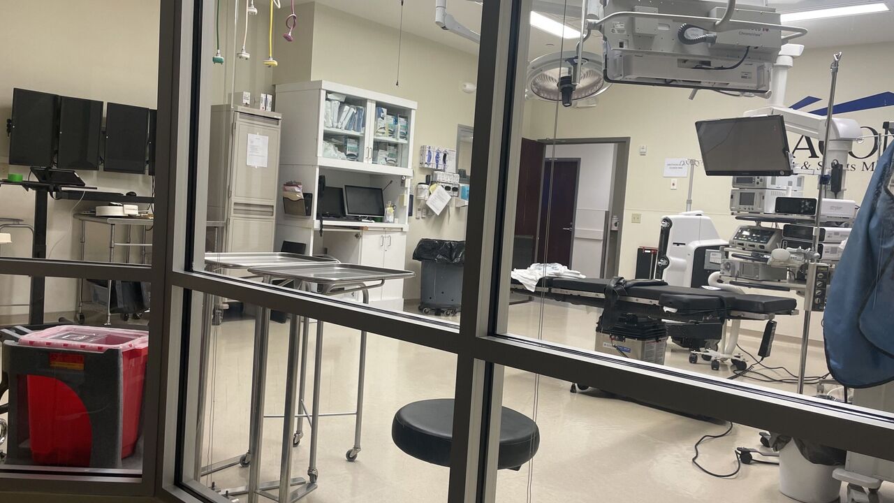 We move down another hallway, and peek into a recovery room where Blue Jays pitcher Chris Bassitt once rested after Tommy John surgery. We then advance to the operating rooms.