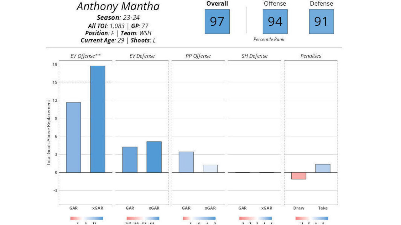 The 29-year-old is in the midst of a resurgent campaign. Mantha has recorded 20 goals and 14 assists in 56 games this season while averaging just 14:09 per contest. His underlying numbers are off the charts, too.