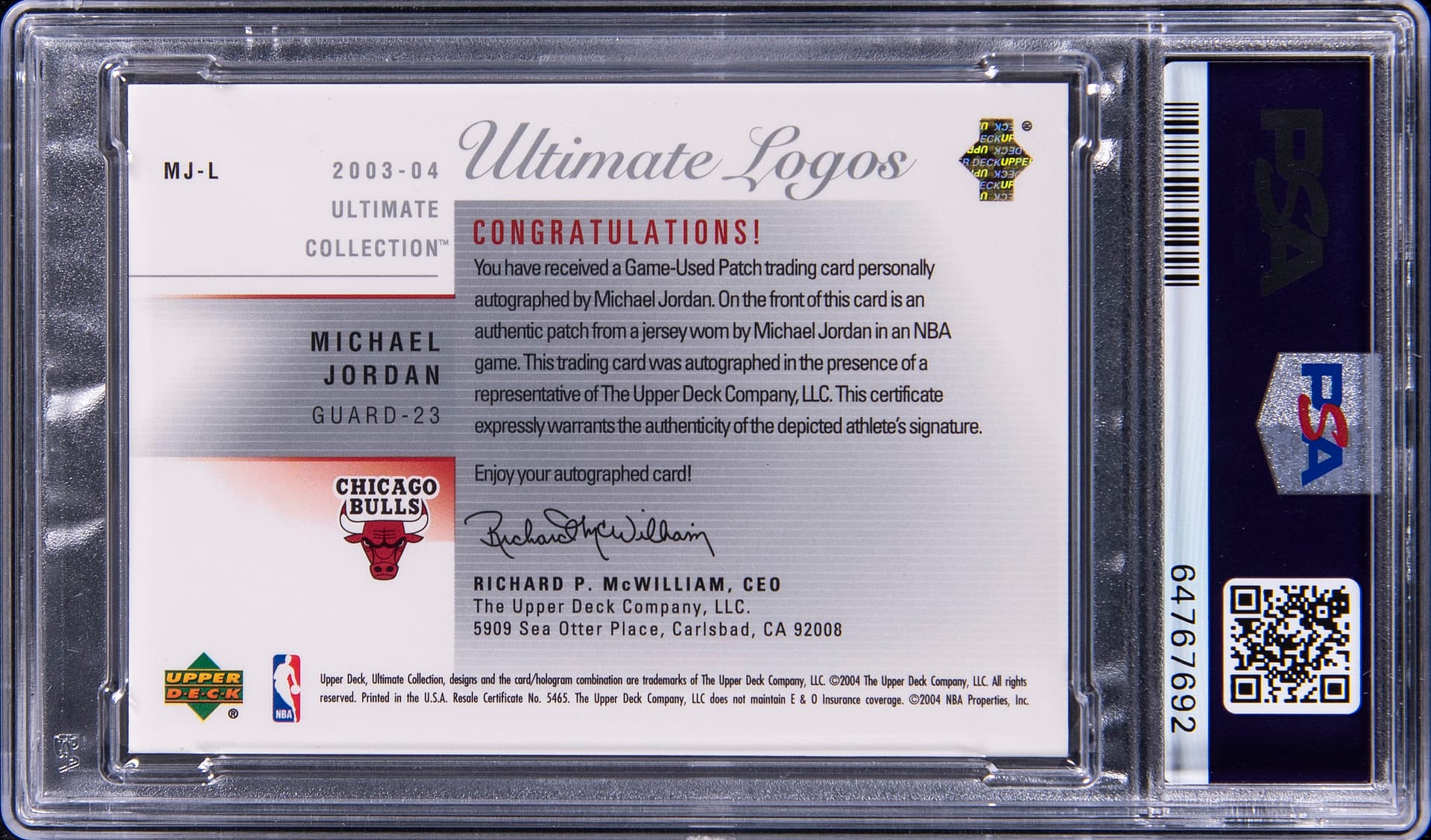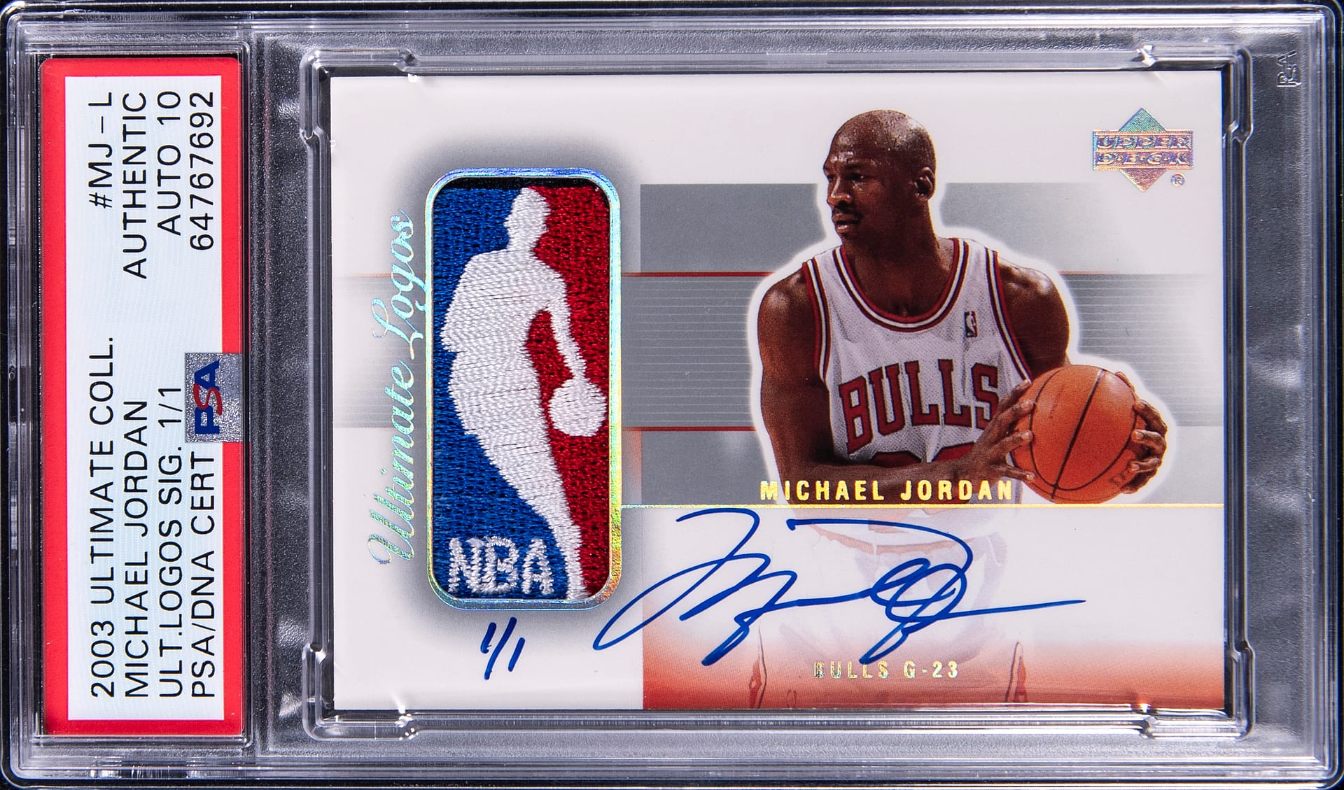 The card is the only one of its kind in existence and is the first signed Jordan Logoman card to feature the NBA legend in a Chicago Bulls jersey.