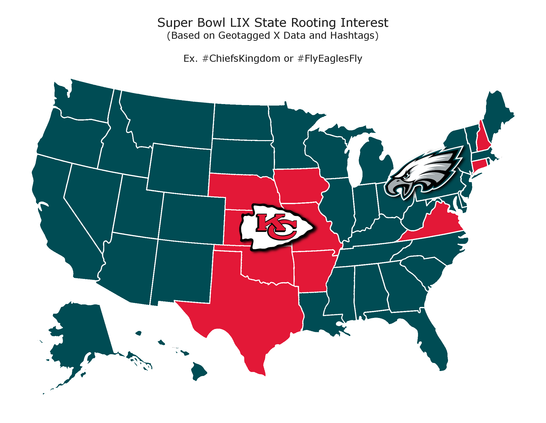X map shows most of U.S. rooting for Eagles over Chiefs in Super Bowl
