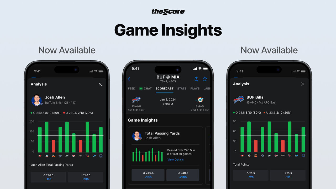 Dive deeper into our new Game Insights! Simply tap on the new View Details button and see a more detailed breakdown of your favorite teams' and players' past games so you can stay ahead of the curve!