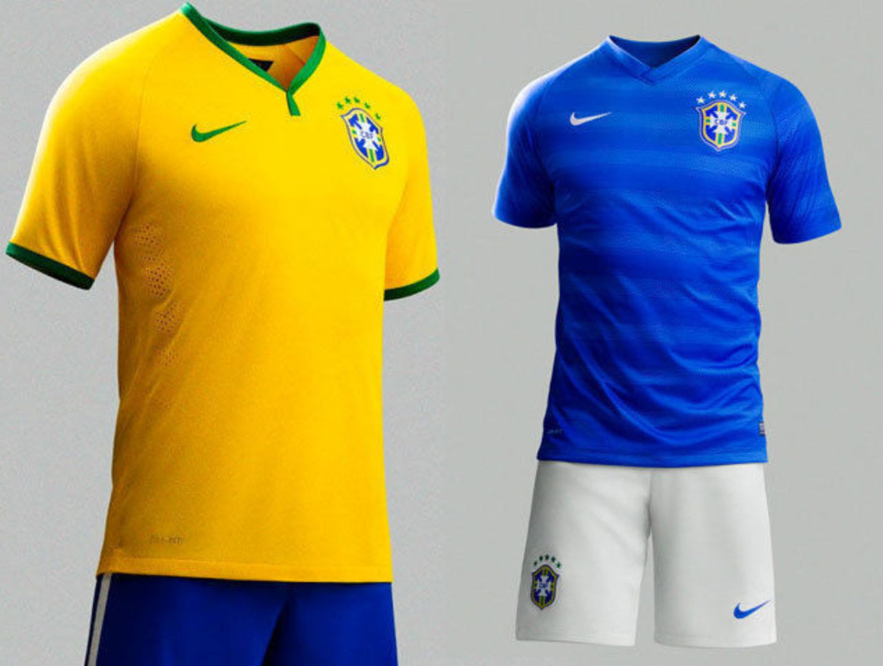 Because no other team is wearing yellow home kits in the 2014 tournament we'll likely not see their road blues which are paired with white shorts. The blue jersey incorporates several horizontal "hoops" which are meant to represent the ocean as well as the "energy and movement of the Brazilian people".