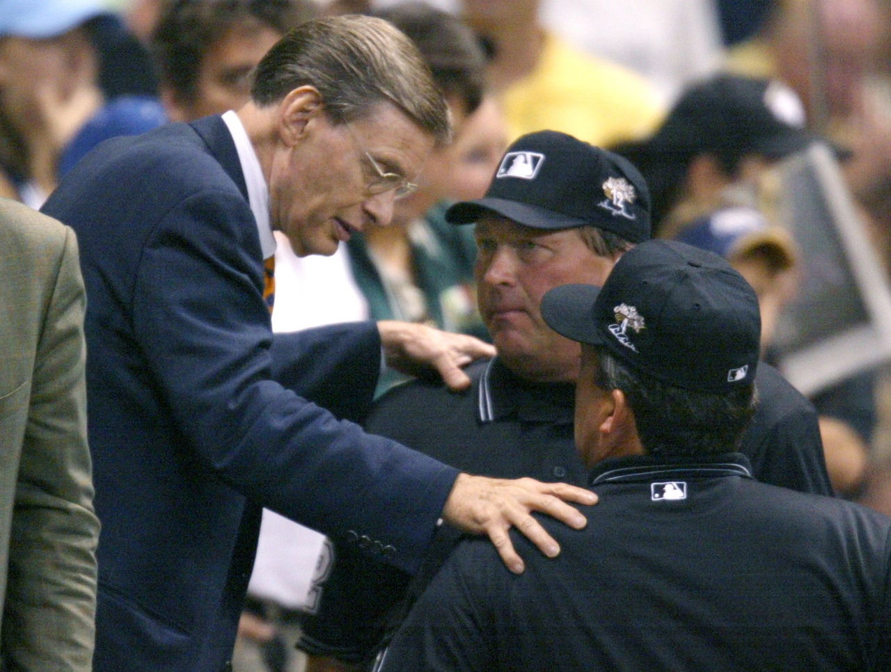 In one of his career's most controversial decisions, Selig ended the 2002 All-Star Game in a 7-7 tie after both teams ran out of available pitchers. Baseball stumbled into the new millennium with the Steroid Era and threat of another work stoppage, but if there's one lasting image of Selig's early 21st century struggles, it was the commissioner huddled up with the umpire crew (2:45:15 mark of video) in the 11th inning of the Midsummer Classic.
