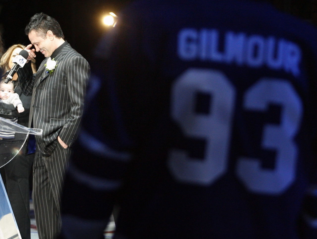 Gilmour became one of the Leafs' most beloved players after coming over in a 10-player deal with Calgary in 1992. He led Toronto to consecutive conference finals appearances before being dealt to New Jersey in 1997. Gilmour was re-acquired in a 2003 trade with Montreal, but played just two shifts before tearing his ACL and subsequently retiring prior to the 2003-04 season.
