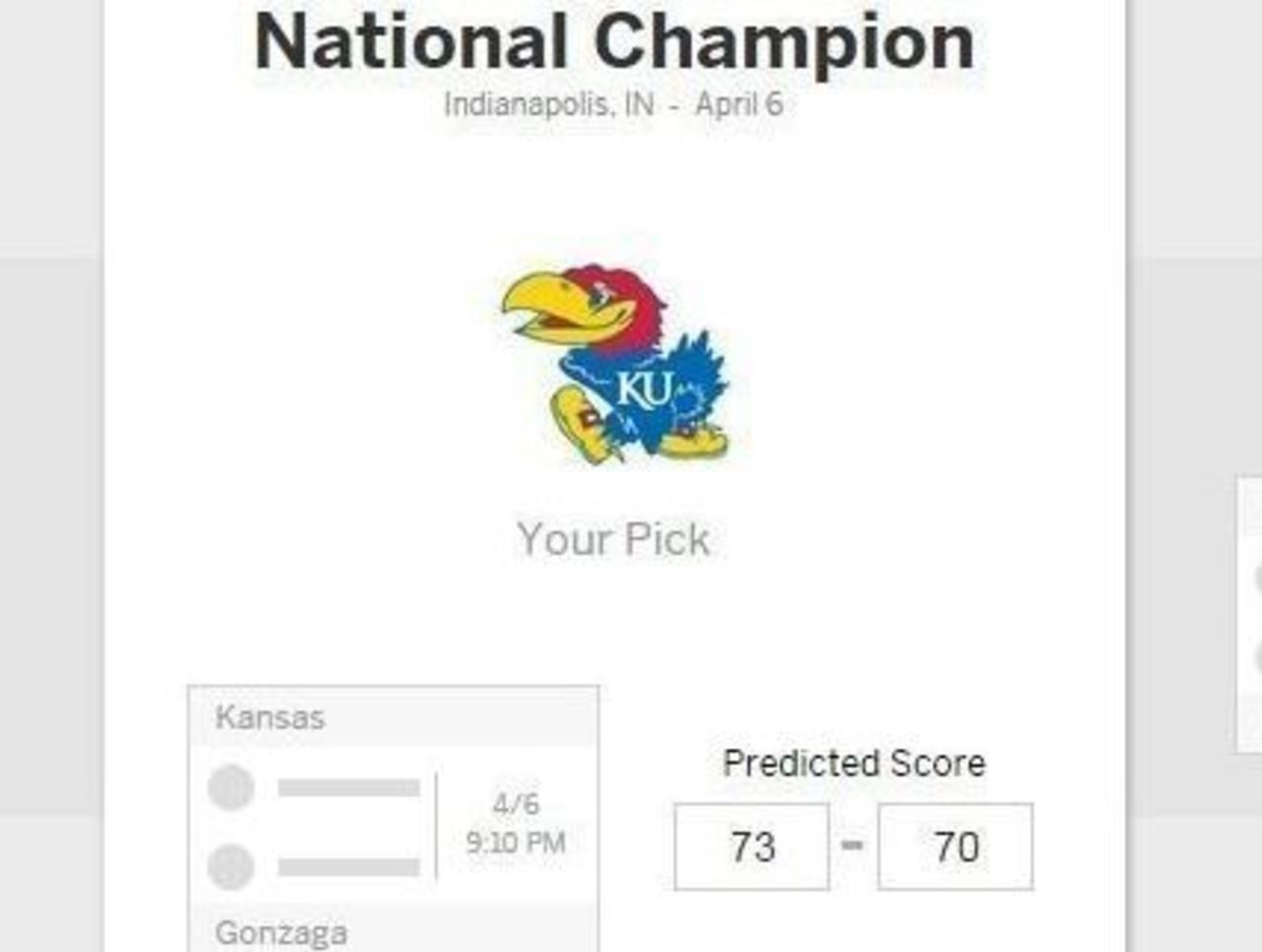 Kimmel is playing fast and loose with his bracket - he has Kentucky losing to Kansas in the Elite Eight, and the Jayhawks taking it all by defeating Gonzaga by three in the final. The Bulldogs were in the running for top seed so it's not a stretch the Bulldogs could make it to the Final Four, but predicting the Wildcats won't enjoy a deep run is risky. Kentucky's 34-0 record didn't happen by accident: the Wildcats are a storm few teams are equipped to weather.