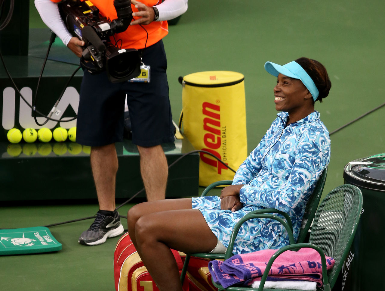 On a cold, blustery, rainy Friday night in the desert, a night whose sullen conditions could've been taken as pathetic fallacy reflecting the on-court outcome (though they didn't much dim the overall glow of the occasion), Venus Williams finally ended her 15-year Indian Wells boycott.