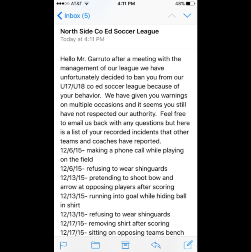 It seems as though Brian Garruto was trying his hardest to be kicked out of his recreational soccer league.