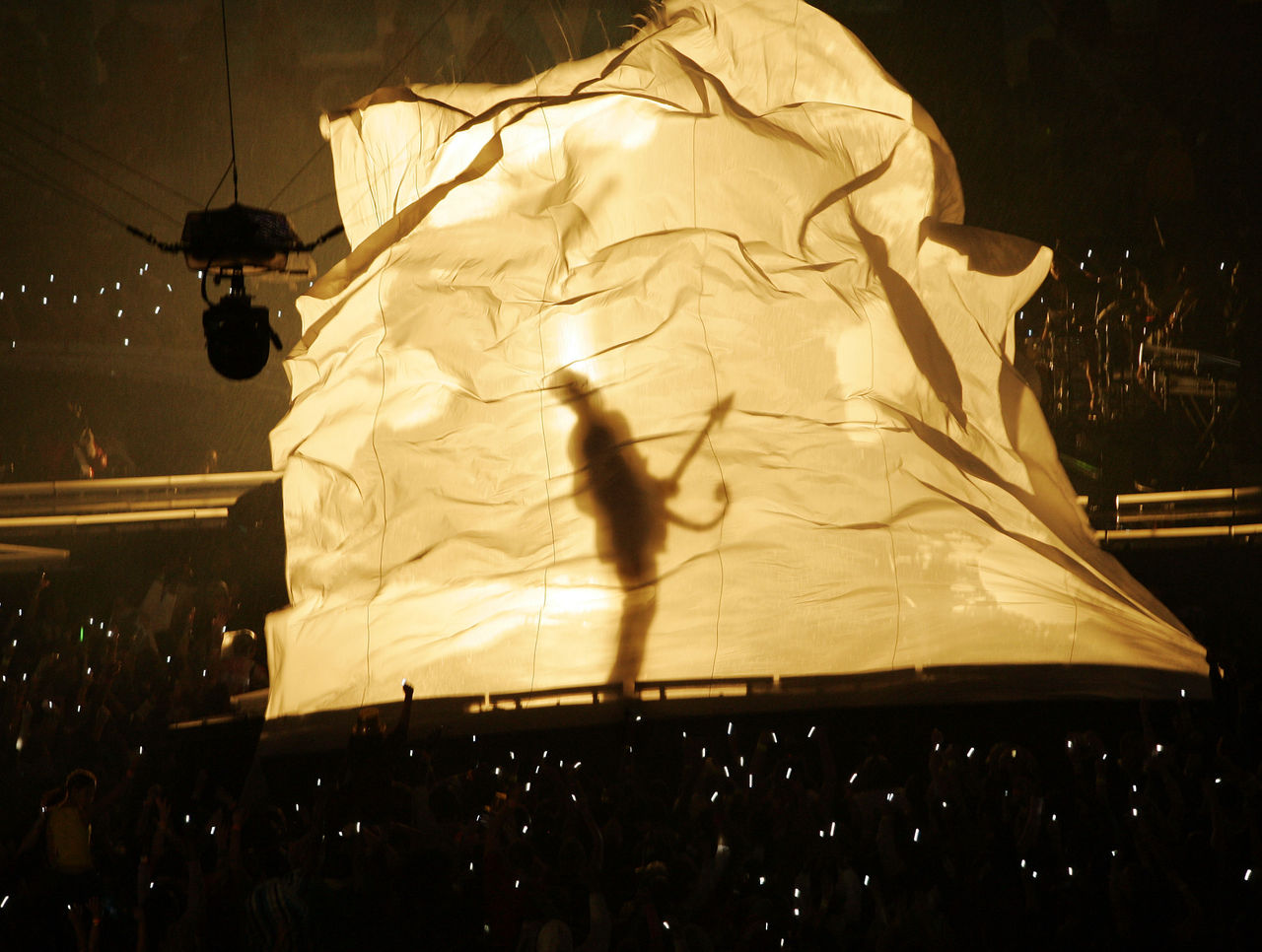 Prince's larger-than-life silhouette behind a flowing sheet stands out as a particularly memorable moment.