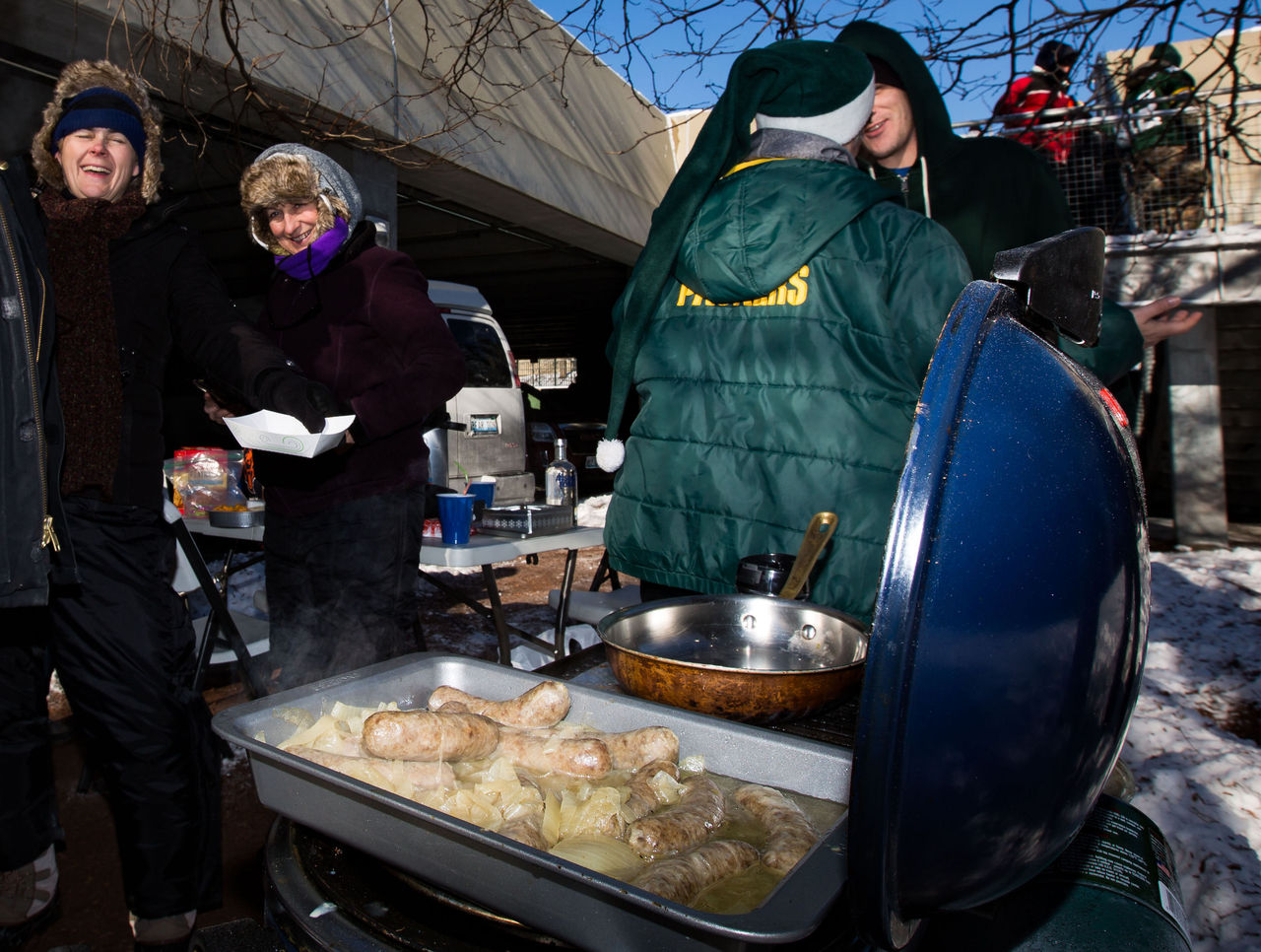 A record-setting 120-yard brat was prepared outside Lambeau Field prior to a game in 2015 - that's the length of a standard football field. Wisconsinites love their brats.