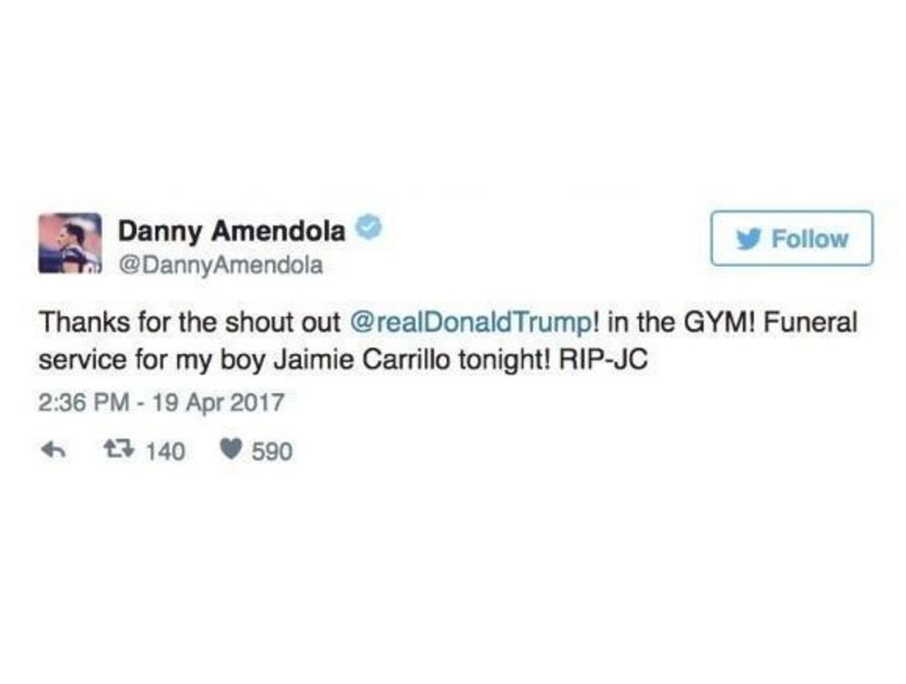 For The Win was able to take a screenshot of the tweet, which included a photo of Amendola working out.
