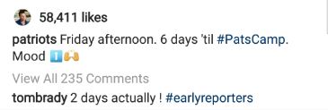 ... to which Brady responded Friday: "2 days actually ! #earlyreporters."