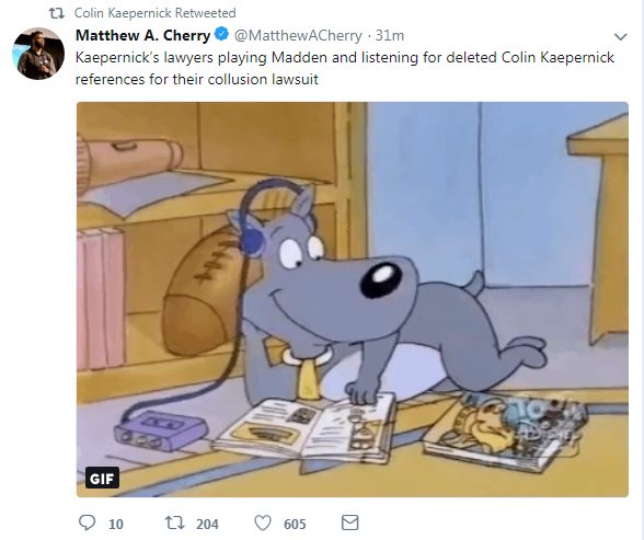 Kaepernick, who has been out of the NFL since March 2017, is suing the league for collusion under the collective bargaining agreement.